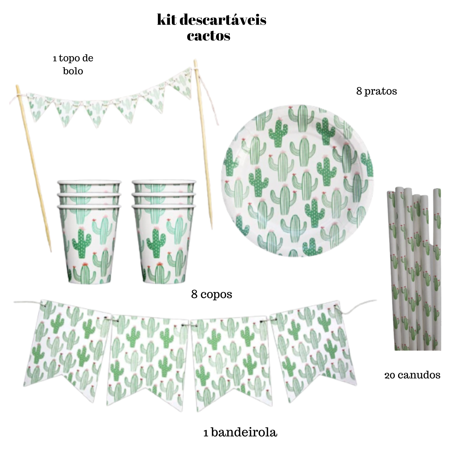 Deixe sua comemoração ainda mais doce e divertida com o Kit Descartáveis Premium Cactos! 💚✨